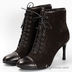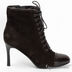 Оригинальные ботильоны с вставками из глянцевой кожи. Невысокий тонкий каблук, подошва с низким профилем, спереди завязываются на шнуровку, сбоку застегиваются на молнию. Классический английский стиль.
