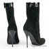 Ботильоны женские, натуральная замша, внутренняя отделка натуральная кожа, каблук шпилька, мыс заостренный, голенище декорировано стразами и бантом