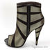 Оригинальные ботильоны из гладкого текстиля. Высокий каблук, скрытая платформа без протектора, открытый мысок. Сбоку застегиваются на молнию.
