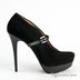 Ботильоны женские из натуральной замши черного цвета. Округлый, слегка заостренный мысок. Застежка регулируемая в виде ремешка с пряжкой. Тонкая черная подошва соединена с изделием клеевым способом крепления. Высокий каблук шпилька черного цвета с набойкой. Стелька и внешняя платформа выполнены из кожи.
