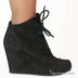 Женские ботильоны из натуральной замши. Внутри отделка - кожа. Танкетка с платформой. Спереди изделия декоративная шнуровка.