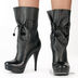 Женские ботильоны из натуральной кожи. Внутри отделка- замша. Удлиненный взъем. Каблук- шпилька. Платформа. декоративная шнуровка спереди изделия.