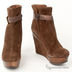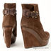 Ботильоны из натуральной замши. Внутренняя отделка из натуральной кожи. Необычная платформа стилизована под дерево, сбоку застегивается на молнию. Отделка - декоративный ремешок из кожи.