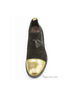 Ботинки из черной замши и золотой потертой кожи, две резинки, меховая стелька. Bouton Fashion — итальянский модный дом создающий уникальные модели обуви в единственном экземпляре, либо небольшими партиями для истинных ценителей итальянского качества и изысканного стиля. При создании обуви используются только натуральные материалы. Тысячи женщин в Европе уже являются преданными поклонницами этой марки.