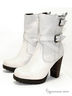 Модные ботинки с застежкой на молнию сбоку. Декорированы двумя пряжками на ремешках.Форма мыска – слегка закругленная.Устойчивый каблук и толстая резиновая подошва,соответствующая высокому стандарту качества и обеспечивает надежную защиту в непогоду и абсолютный комфорт для Ваших ног. Материал верха:натуральная кожа серо-молочного цвета с располировкой.Высота каблука ок. 10см.Подошва ок. 1,2 см. Высота голенища ок. 15 см. Обхват голенища ок. 27см. Материал подкладки:ворсин.Рекомендуем подбирать обувь размер в размер.Произведено в Бразилии.