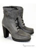 Стильные ботинки на каблуке из натуральной кожи серого цвета с располировкой на регулируемой шнуровке. Толстая резиновая подошва соответствует высокому стандарту качества и обеспечивает надежную защиту в непогоду и абсолютный комфорт для Ваших ног.Дополнительно имеется застежка на молнию сбоку. Высота каблука ок. 10см.Подошва ок. 1,2 см. Высота голенища ок. 12 см. Обхват голенища ок. 26 см. Материал подкладки:ворсин.Рекомендуем подбирать обувь размер в размер.Произведено в Бразилии.
