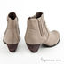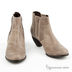 Элегантные кожаные ботинки со скошенным каблуком. Подошва приклеена к основанию изделия. Подкладка и стелька выполнены из натуральной кожи. По бокам ботинки дополнены плотной резинкой.
