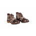Стильные ортопедические ботинки для девочки. Выполнены из коричневой лаковой кожи и нубука. Декорированы стразами. Удобные застёжки на липучках. В комплект входит пара ортопедических стелек.