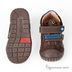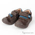 Замшевые ботинки из натуральной кожи. Застегиваются на две липучки. Подкладка и стелька выполнены из натуральной кожи. Декорированы синими вставками и нашивками. Проклеенная подошва с перфорацией.