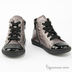 Стильные кожаные кеды застегиваются на молнию и завязываются шнурками. Лаковый мыс. Язычок украшен стразами. Внешняя часть декорирована клепками.
