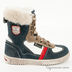 Утепленные высокие ботинки застегиваются на молнию и завязываются шнурками. Контрастные вставки и нашивка.