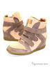 Прекрасные осенние ботинки от KLIMINI.Верх выполнен из замши персикового цвета со вставками контрастного цвета.Модель с закругленным мыском имеет застежки на липучки, которые отлично фиксирует модель на ноге. Внутри - отделка из кожи. Изделие имеет скрытую танкетку и контрастную подошву, дополненную рифлением.Ультромодный дизайн этого изделия не оставит Вас равнодушной. Высота танкетки 6,5см.Подошва - термопласт.Рекомендуем подбирать обувь больше на размер.Произведено в Бразилии.