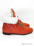 Женские зимние ботинки от Klimini .Верх выполнен из натуральной кожи терракотового цвета,вверху имеется меховой отворот на кнопочке-фиксаторе.Дополнены впереди шнуровкой.Внутри утеплитель - мягкий натуральный мех..Высота подошвы с каблуком ок.1 см.Высота голенища ок.15см,высота с отвернутым голенищем ок.12 см.Обувь рекомендуем подбирать размер в размер.Произведено в Турции.