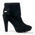 Классические ботинки из велюровой ткани. Высокий каблук и небольшая платформа, сзади застегиваются на молнию, с отворотами.