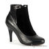 Ботинки из гладкой кожи и велюра. Небольшой каблук, сбоку застегиваются на молнию и хлястик.