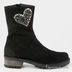 Ботинки женские, натуральная замша, внутренняя отделка натуральная кожа, цвет черный, сбоку отделка стразы в виде сердца, мыс закруглен.