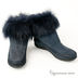Мягкие ботинки из замши с серебристым напылением. Устойчивая подошва-манка. Внутренняя отделка - мех, сзади завязываются на атласную ленту.