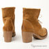 Повседневные ботинки из замши. На толстом устойчивом каблуке, подошва-манка. Внутренняя отделка из меха, спереди завязываются на шнуровку.