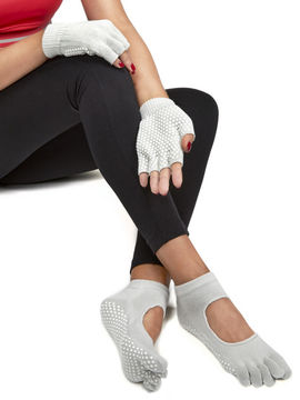 Носки противоскользящие для занятий йогой, серый и перчатки противоскользящие для занятий йогой Bradex, цвет серый