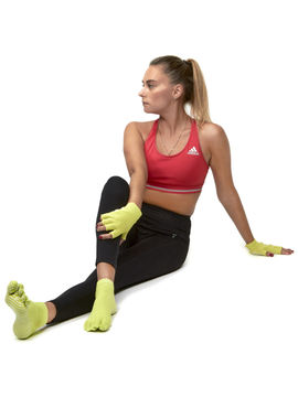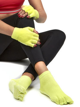 Носки противоскользящие для занятий йогой закрытые, салатовый и перчатки противоскользящие для занятий йогой Bradex, цвет салатовый