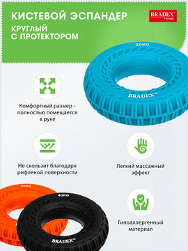 Кистевой эспандер 20 кг, круглый с протектором Bradex, цвет синий