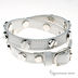 Длинный белый браслет из искусственной кожи будет стильно смотреться за счет многочисленных крупных металлических вставок. Модель застегивается на часовой ремень-замок, обматывается вокруг руки в несколько раз.