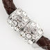 Состав: Вставки: кристаллы Swarovski. Цвет кристаллов: белый(прозрачный). Основа: натуральная кожа коричневого цвета. Покрытие: гальваническое от 1 до 4 микрон родия с серебром