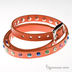 Длинный оранжевый браслет из искусственной кожи декорирован мультикристаллами. Модель обматывается вокруг руки в несколько раз.