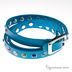 Длинный светло-синий браслет из искусственной кожи декорирован мультикристаллами. Модель обматывается вокруг руки в несколько раз.