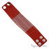 Красный браслет из искусственной кожи создает видимость нескольких браслетов за счет резаных полосок, украшенных наклеенными металлическими элементами. Застежки-кнопки регулирует длину изделия.