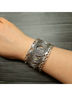 Нежный браслет Мия на каждый день, так и для особых случаев. Гипоалергенный сплав замак (смесь цинка, магния и меди), уникальный неповторимый дизайн придадут вам узнаваемый стиль и женственность. Для ухода за изделием необходимо слегка протереть металлическую составляющую тканью, смоченным в нашатыре, либо аккуратно потереть ластиком.