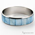 Широкий браслет нежно-голубого цвета, с перламутровым отливом. Внутренняя часть браслета металлическая.