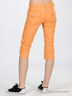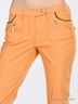 Эластичные бриджи оригинального оранжево-песочного цвета. Отрезной пояс, есть шлевки для ремня. Застегивается на молнию и пуговицу. Сзади треугольная кокетка. Четыре кармана спереди, два кармана сзади. Брючины с прострочками-стрелками и небольшими игривыми разрезами. Благодаря эластичного материалу прекрасно садятся по фигуре и подчеркивают бедра.
