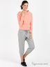 Детали: отрезной пояс на резинке дополнен кулиской; два кармана; низ изделия на манжете; спереди нашивка