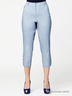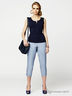 Брюки с застежкой на молнию и пуговицу, зауженные к низу, длинна 7/8. Модель выполнена из хлопка на стрейч-основе. Декорированы строчкой и шлевками для ремня.