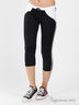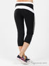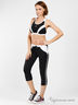 Спортивные эластичные бриджи прямого кроя. Отрезной пояс-резинка на веревочке. Модель украшена контрастными вставками и сетчатой тканью.