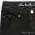 Модель прямого кроя застегивается на пуговицу и молнию. К поясу пришиты шлевки. Три передних кармана, два задних кармана. Многослойные цветы на переднем кармане, атласный бантик сзади.