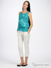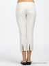Зауженные к низу бриджи в тонкую полоску. Отрезной пояс, есть шлевки для ремня. Застегиваются на молнию, пуговицу и крючок. Два втачных кармана, два накладных сзади.