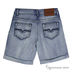 Шорты свободного покроя до колена из легкой джинсовой ткани вываренной до светлого цвета.