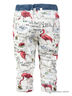 Эффектные бриджи из орнаментальной ткани с изображением фламинго будут прекрасно гармонировать со всеми однотонными изделиями из этой коллекции! Особый шарм этим бриджам придает пояс, выполненный из джинсы.