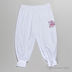 Бриджи свободного кроя. В пояс вставлена резинка. Брючины посажены на манжеты. Декоративная аппликация на передней части.