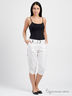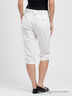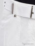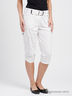 Бриджи со сборками сбоку внизу. Карманы по бокам и сбоку, накладные карманы с клапанами сзади. Декоративная отстрочка и заклепки. Пояс со шлевками, застежка на молнию и пуговицу. Текстильный ремень с металлической пряжкой в комплекте.