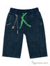 Оригинальные бриджи из джинсовой ткани. Пояс на трикотажной резинке, регулируется тесьмой. Пять карманов. Эффектные декоративные строчки.