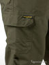 Прямой крой, тонкая плащевая ткань. Застежка пояса на кнопку и молнию. Низ брюк дополнен кулиской и эластичным шнуром с фиксатором. Анатомический крой колен. Два передних, два задних кармана, один боковой карман-клапан.