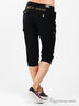 Детали: отрезной пояс со шлевками для ремня, застежка на пуговицу и молнию, два прорезных кармана спереди, два прорезных с клапанами сзади, на брючинах два кармана на кнопках, спинка сзади декорирована контрастной брендовой вышивкой.