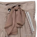 Детали: застежка на молнию и пуговицу, втачной пояс со шлевками для ремня декорирован шифоновым бантом, четыре кармана, декорированы стразами и тесьмой