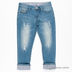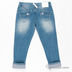 Детали: застежка на молнию и пуговицу, втачной пояс со шлевками для ремня, пять карманов, эффект потертости.