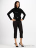 Элегантные бриджи придадут Вашему образу изящества и шика. Они сочетают в себе изысканную классику и легкое озорство. Зауженный крой. Отрезной пояс со шлевками. Втачные карманы на молнии спереди спереди. Застежка на молнию и пуговицу. Маленькие разрезы внизу изделия.