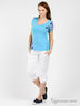 Классические бриджи выполнены из приятного на ощупь материала. В поясе вставка из эластичной резинки. Низ посажен на эластичные манжеты. По бокам расположены открытые карманы.