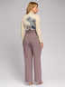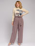 Брюки цвета мокко с защипами на талии и поясом визуально удлинят ноги и выгодно подчеркнут талию.